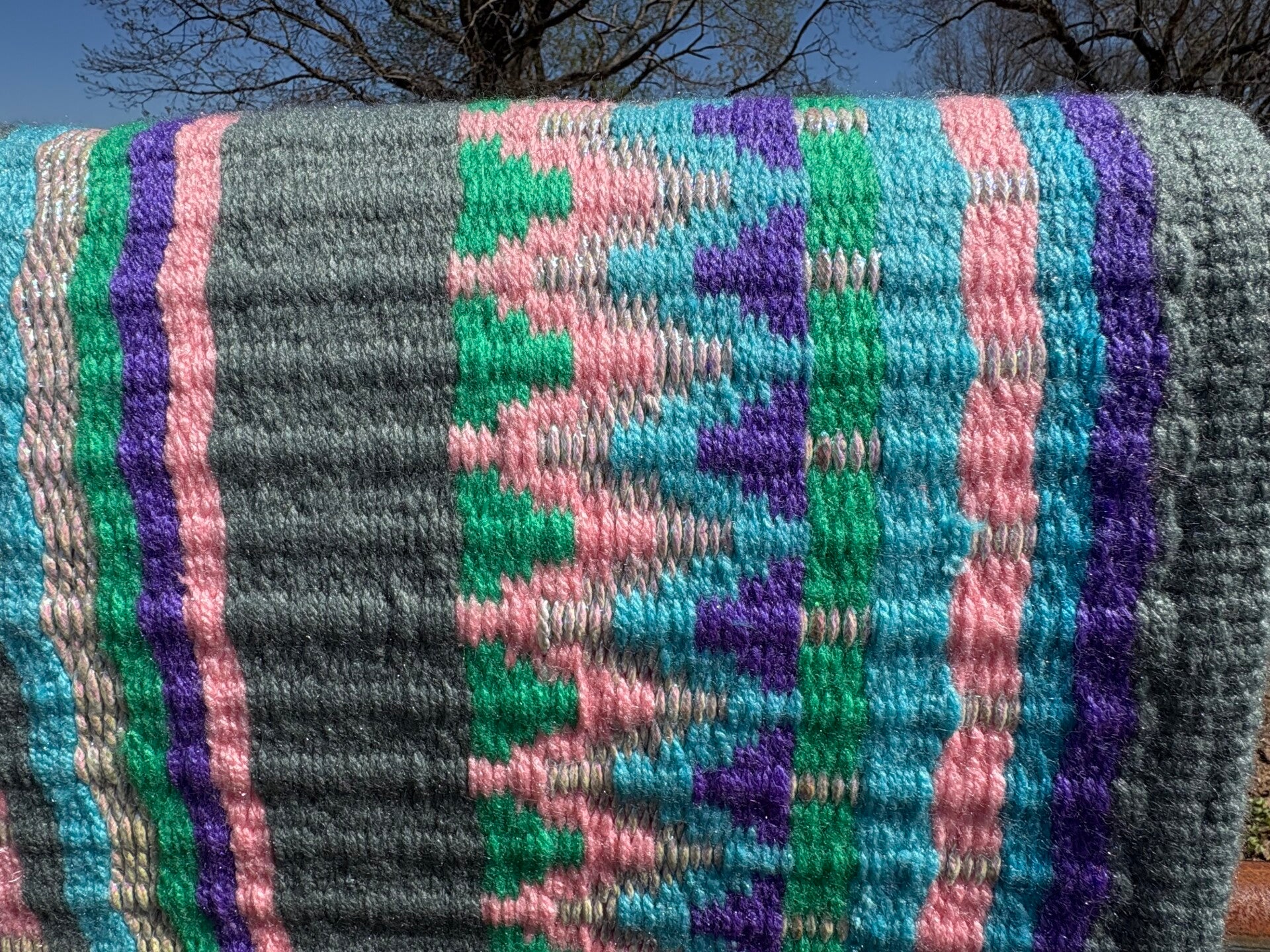 Beautiful oversized pad on a light gray base with pink, light green, light blue and lavender accented with AB metallic threads. Custom designed 34x42